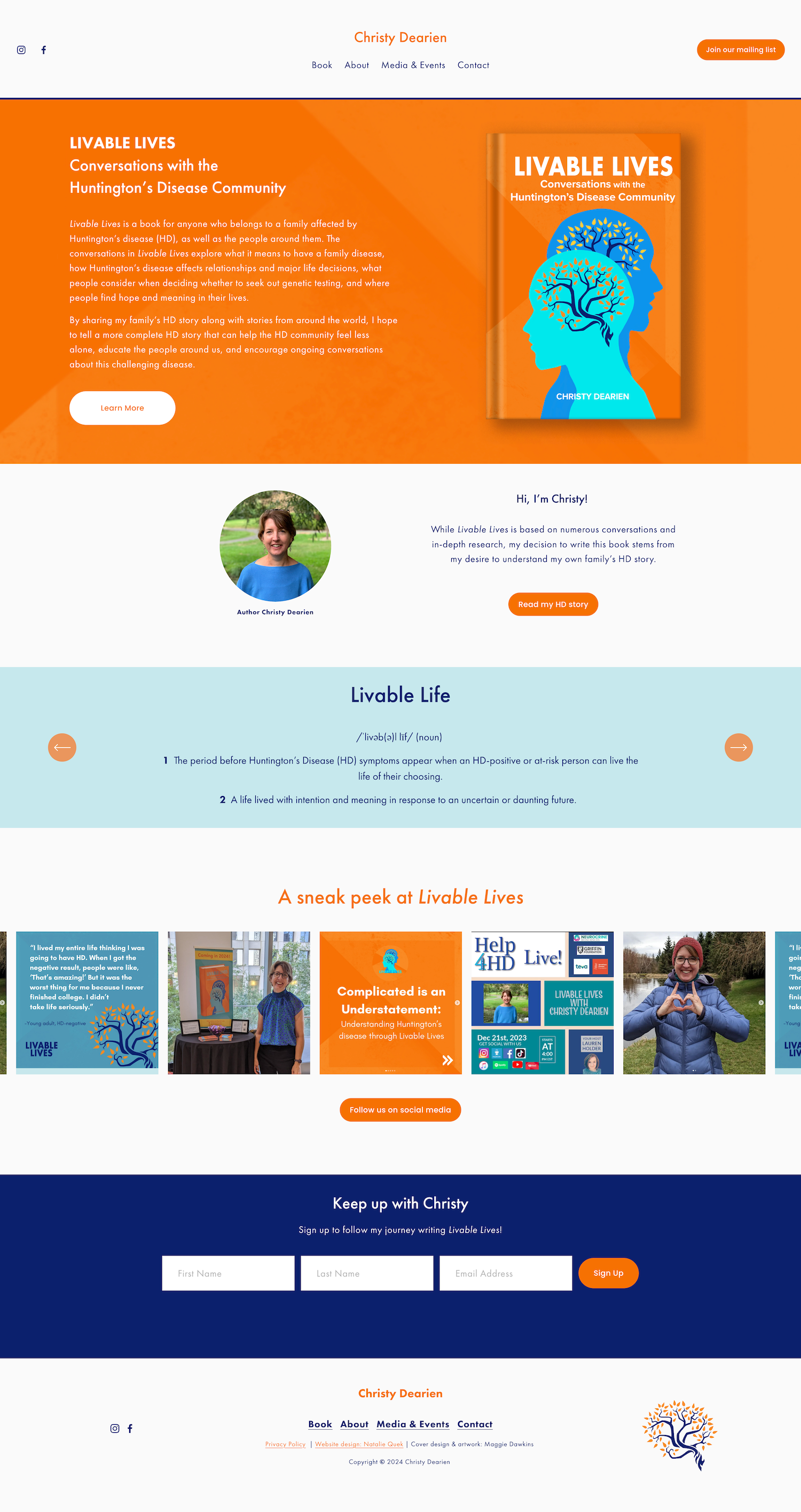 Website design for author Christry Dearien, to promote her new book Livable Lives (coming in 2024).